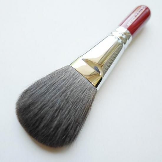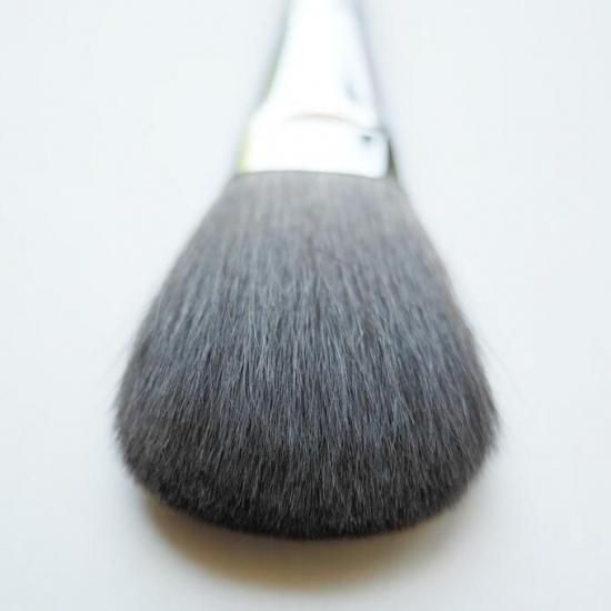 丸平金具の特徴は、金具の上部分からすぐ毛先があり、トップまでの長い灰リスの毛丈を存分にお使いいただくことができます。しなやかで、それなりの弾力、なんといってもほかの天然毛と異なり、毛先の細さで、皆様のお化粧を発色のある、奇麗な仕上げをしてくれることです。お粉詰まりが少なく、快適にお使いをいただけます。シャンプーでお洗いください。