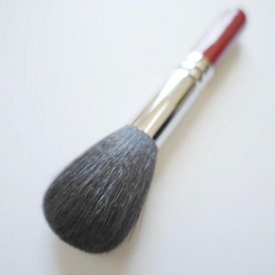 パウダーブラシといえば、昔はヤギでした。今は、ヤギ毛の中でも山羊(上質ヤギ)・山羊(粗光峰)・細光峰、取れる場所を限定して、ランク付けしております。どの部分も、やはり縮れ毛で、パウダーの含みが良く、パウダリーファンデーションにお使いになると腰の強さ、お粉の含みは本当に最高です。リーズナブルな商品です。一度お使いください。