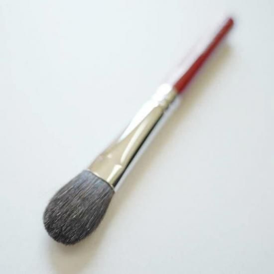 アイシャドーブラシが誕生した頃は、恐らくウマ(馬)だけだったように思います。安価でアイシャドーチップより使いやすいので、全国に広がっていったように思います。毛質は素直な直毛で少し毛が太く、ソフトな肌あたりです。この毛先のワイドさでわかるように、アイホールにお使いください。今も化粧品メーカーで美容部員の方々が多く使用されている商品です。