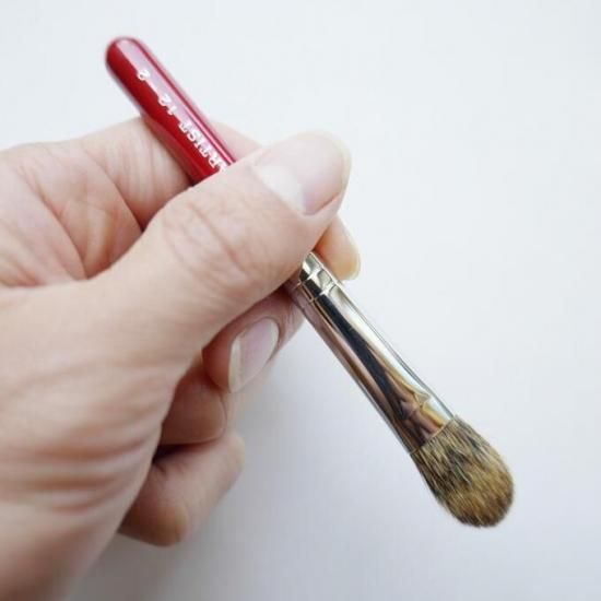 ポニーのアイシャドーブラシが全国に普及してから、何年後かにハイグレードな毛質でデビューしたのが松リスのシャドーブラシです。またその中にカナダリス(又はイタチ)を混合することでさらに肌当たりのよさを追求しました。つやがあり、腰も強くなり、化粧好きのお客様に多く愛されております。アイホールを何度も撫でることでパール感のある発色を促せます。