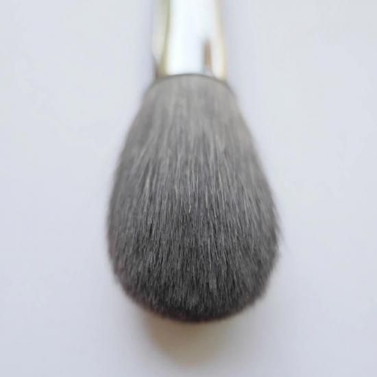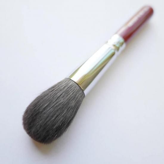 毛先に、チークカラーを少量含ませます。チークポイントに、ゆっくり付け、その後、軽くぬるようにお付けください。灰リスの肌あたりに勝るものはありません。また、軽くチークポイントを、ブラシで何度か往復していただきますと、化粧品の持つ本来のカラーが発色し出します。スポンジや、毛量の少ないブラシでは描けない、カラーと発色が楽しめます。