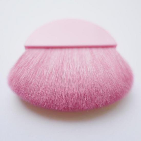 パウダーを付けたり払ったりとコンパクトで便利な熊野メイクブラシです。お肌に刺激がなく気持ちよく使える半月型のメイクブラシにお粉を含ませ顔の広い部分は側面で、小鼻などの細かい部分はブラシの先端を使って顔全体になじませます。コシのある粗光峰を使用。お肌にしっかり密着します。毛量の多い扇形でお顔全体に素早くお粉をのせることができます。メイク直しに持ちやすい形状です。